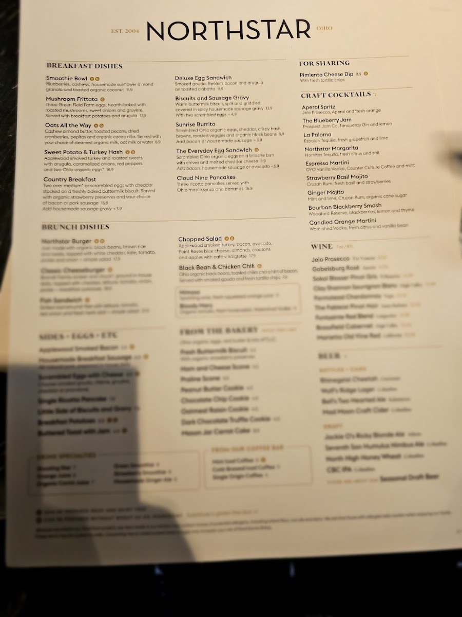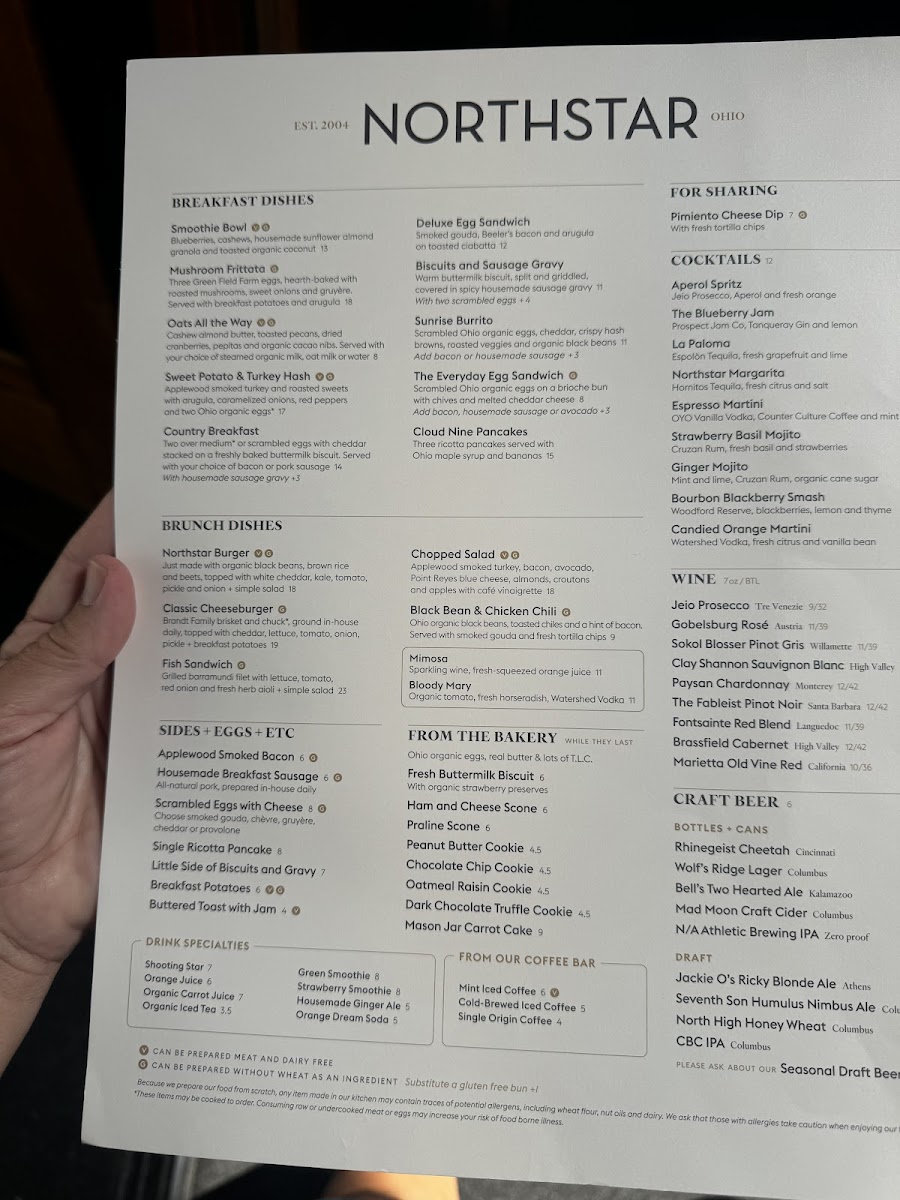 The menu at Northstar Café at Easton Town Center offers a variety of American-style dishes suitable for different times of the day, including breakfast, brunch, and casual lunch or dinner options. The menu is organized into several categories, providing a range of food and drink selections to accommodate various tastes and dietary preferences.